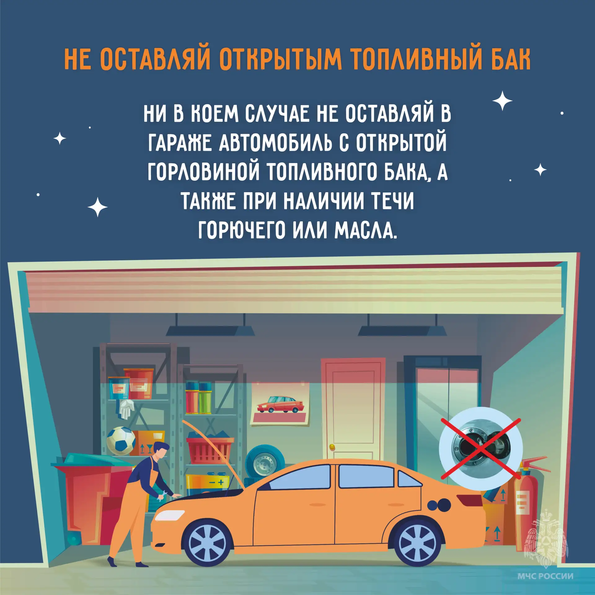 Возгорания в гаражных кооперативах, к сожалению, не редкость. МЧС России подготовило карточки о простых правилах пожарной безопасности в помещении для автомобильной техники.