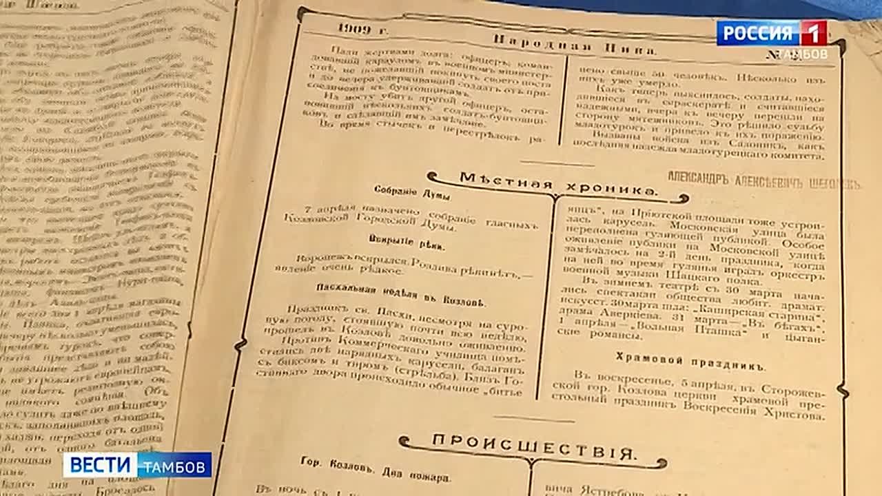 Рассмотреть экземпляры газет вековой давности можно в Державинском университете. Накануне там открыли выставку «Дореволюционная пресса Тамбовской губернии», над формированием которой работали уже давно. Церемонию приурочили к 30-летию журналистского образования в регионе. Об уникальных изданиях и судьбе современных печатных СМИ — сюжет Татьяны Макаровой.