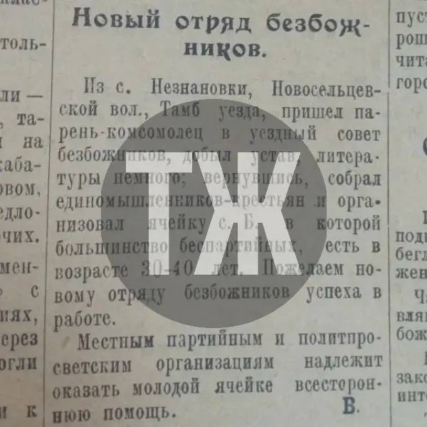Тамбовский уездный совет Союза безбожников определил план работы на год. Организация намерена увеличить сеть деревенских антирелигиозных кружков. В населенных пунктах, где сторонников много и преобладает молодежь, решено открыть кружки «повышенного уровня», которые отдаленно будут напоминать семинарию. Специалисты задумались: использовать старые программы обучения и, следовательно, пособия или разработать новые.
