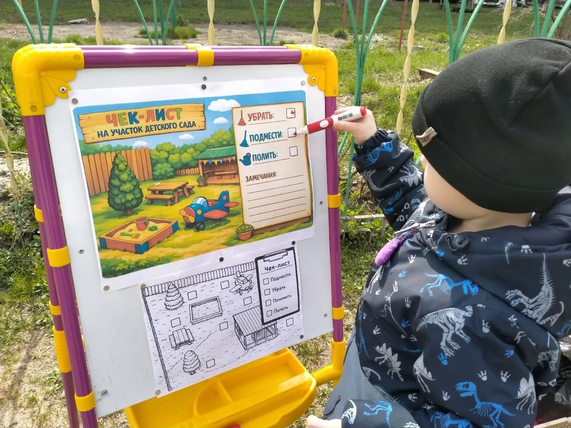 А недавно малыши отправились на прогулку с необычным заданием — у каждого был свой чек-лист! Ребята внимательно осмотрели территорию, отметили, что нужно сделать: убрать веточки, подмести лавочку, собрать мусор. И дружно взялись за работу.