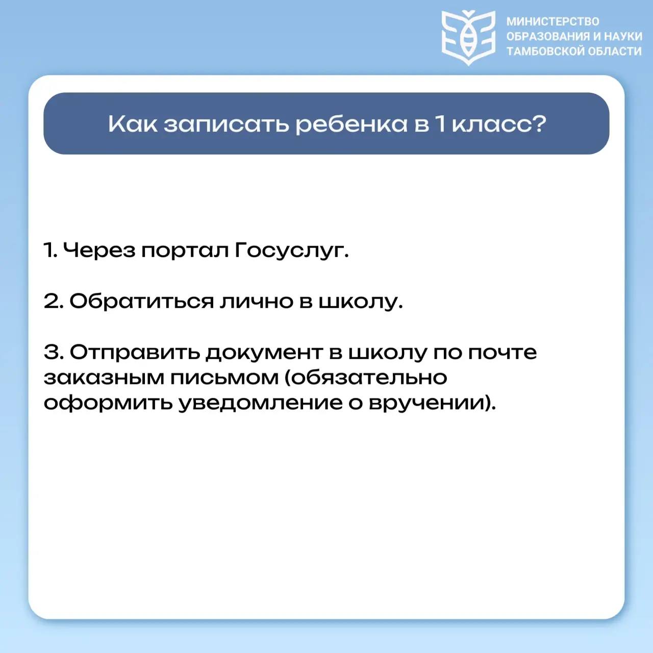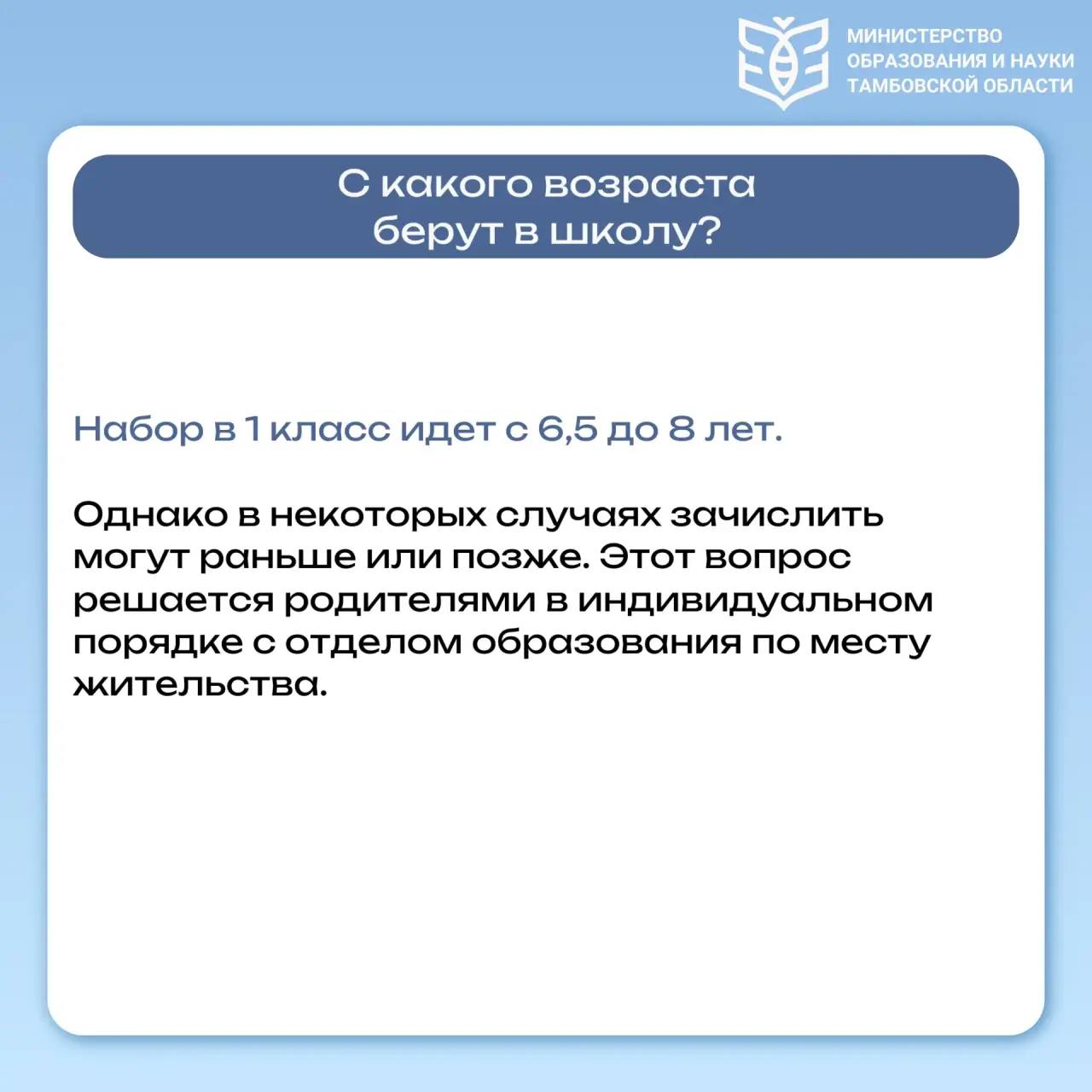 В министерстве образования и науки Тамбовской области рассказали, как будет проходить зачисление первоклассников в школы.