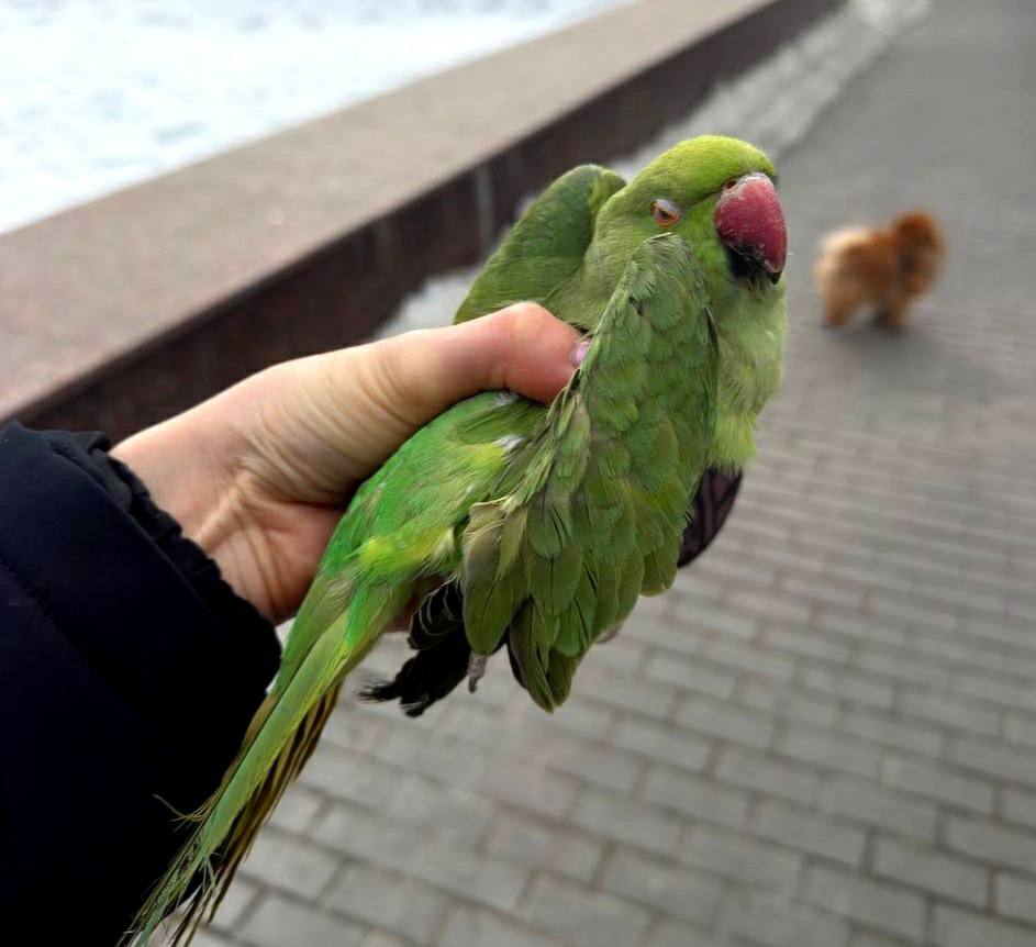 Волонтёры поймали попугая на площади Льва Толстого. Хозяев просят позвонить по номеру телефона: 89622356993.