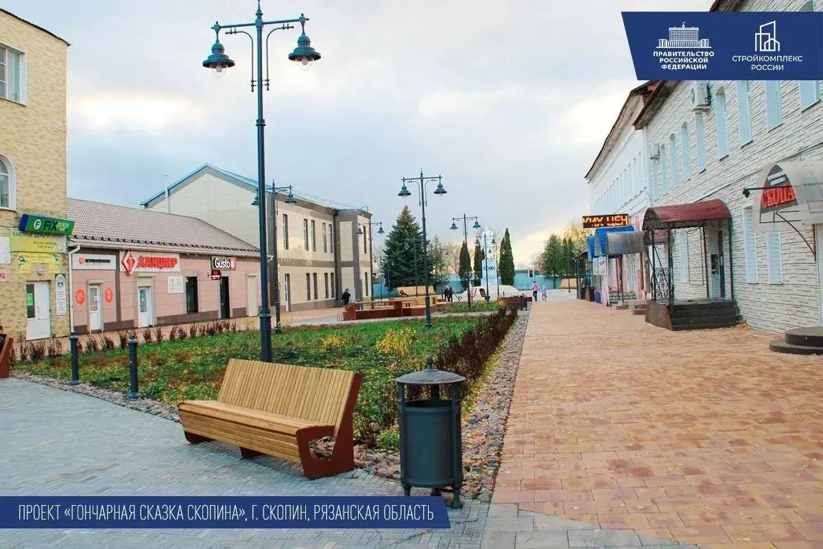 Например, в Рязанской области в Скопине воплотили проект «Гончарная сказка». Улицу Ленина оформили в стиле знаменитой местной керамики: здесь появились лавочки, художественная подсветка, копии утраченных соборов - получилось с уникальным колоритом, с душой. В Ряжске в сквере на Волгоградской проложили дорожки и установили детскую площадку.