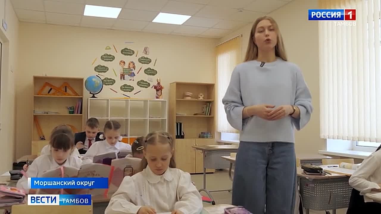Моршанский округ, где в Сокольниковской начальной школе после ремонта возобновили учебный процесс. Здание 86-го года постройки сильно обветшало. Плоская крыша - в особенности. После работ, проведённых по нацпроекту, школу не только обновили, но и увеличили рабочее пространство.