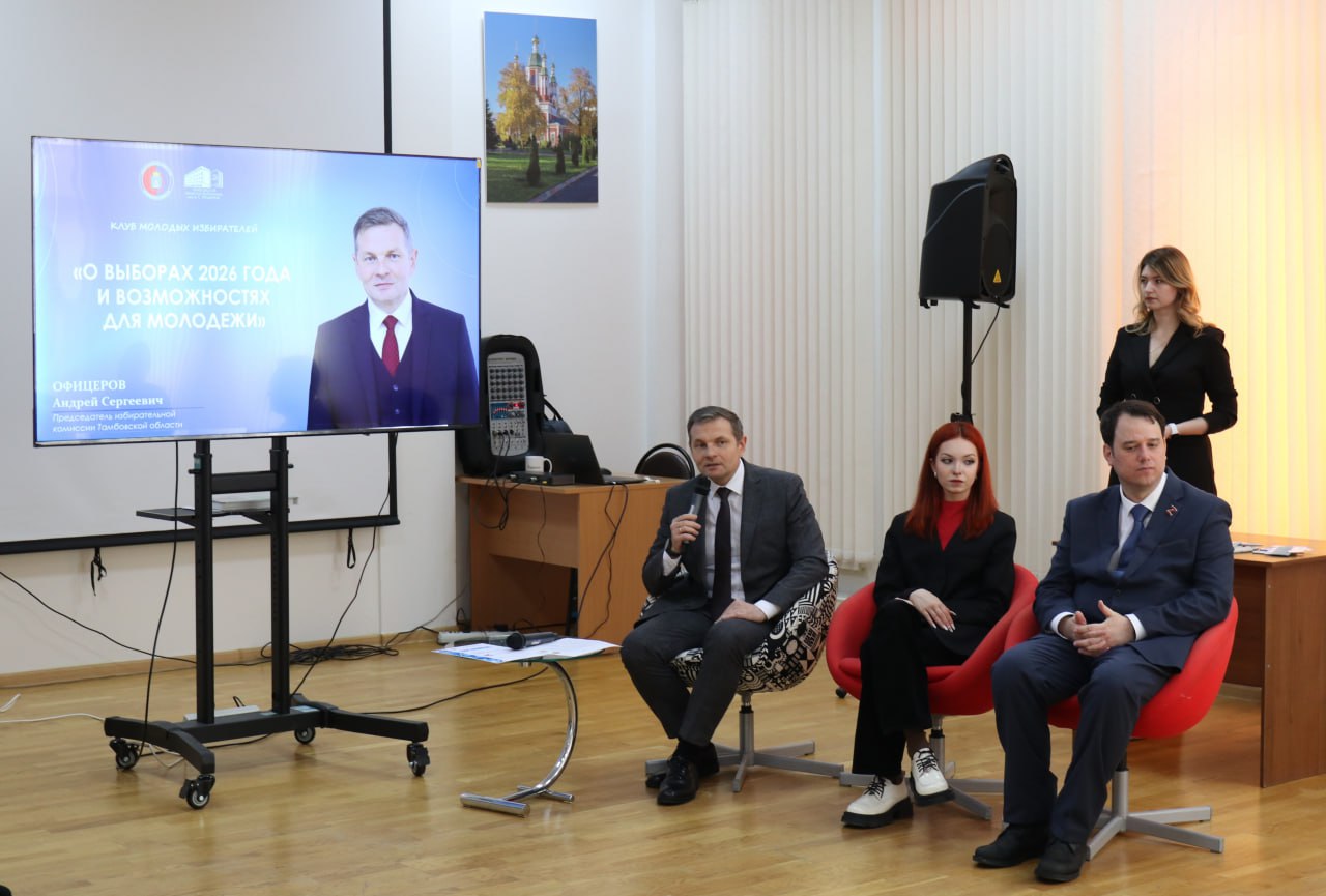 Заседание состоялось на традиционной площадке – в Тамбовской областной универсальной научной библиотеке имени А.С. Пушкина. Открыл встречу председатель избирательной комиссии региона Андрей Офицеров, рассказавший молодым избирателям о предстоящих выборах 2026 года и перспективах для молодежи.