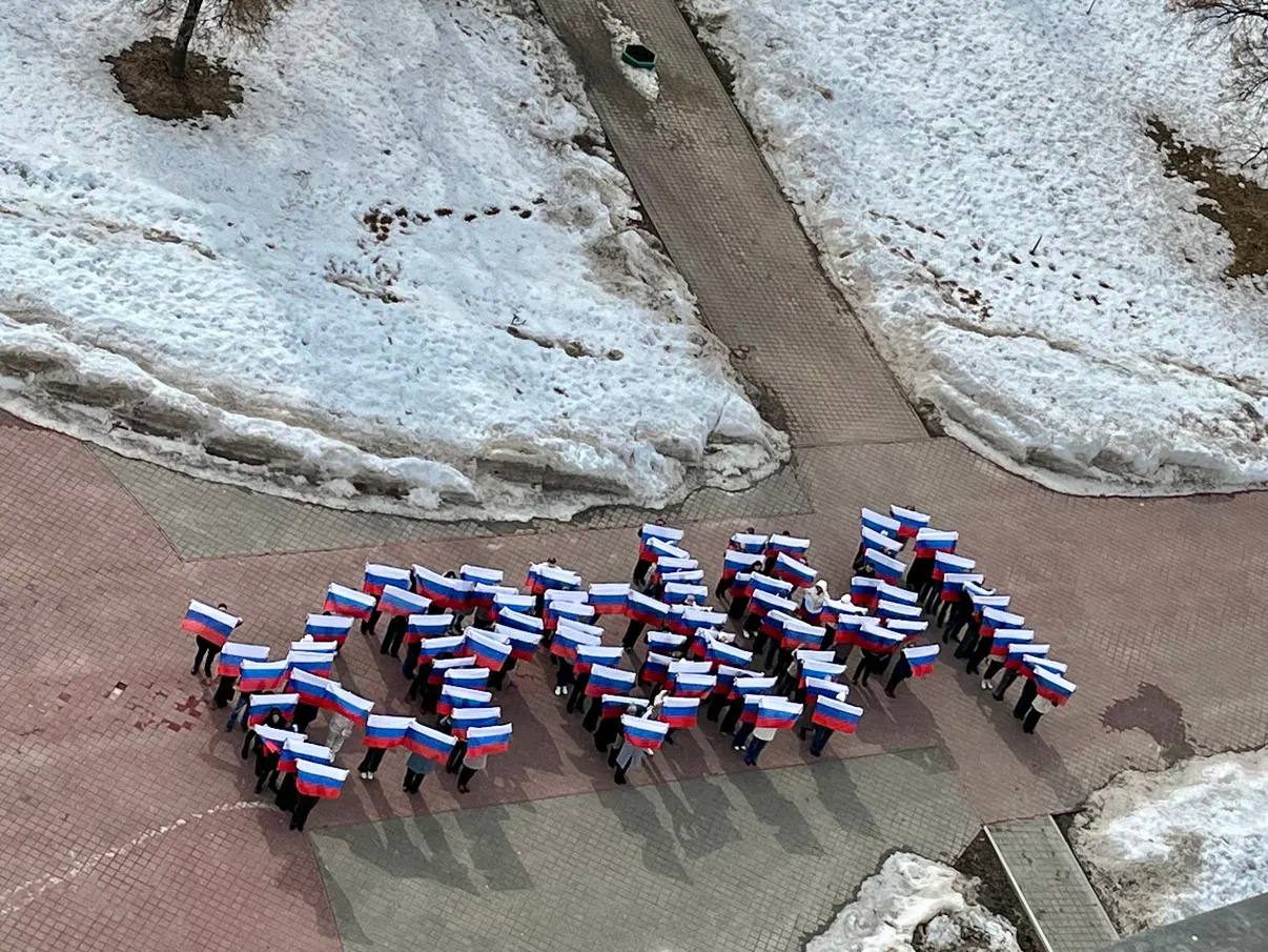В областном центре главные события развернулись сразу на нескольких площадках. На Соборной площади молодежные объединения организовали флешмоб: участники выстроились в слово «Крым», подняв над головой российские флаги.