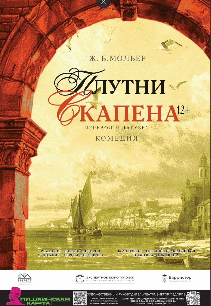 Премьерный спектакль «Плутни Скапена» по пьесе Мольера тамбовчане смогут увидеть 19, 20,21 марта.