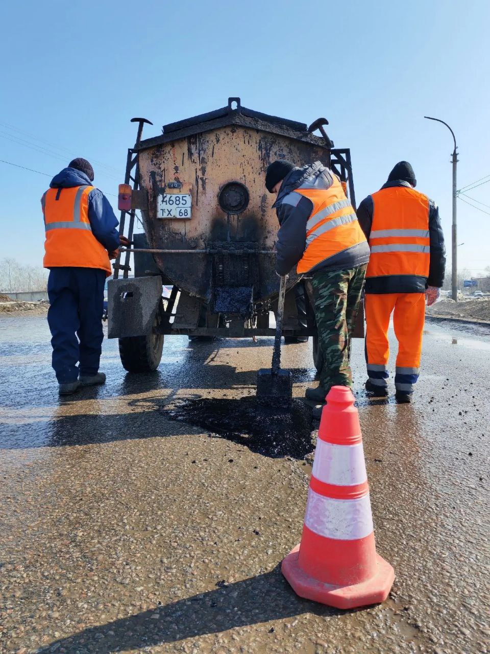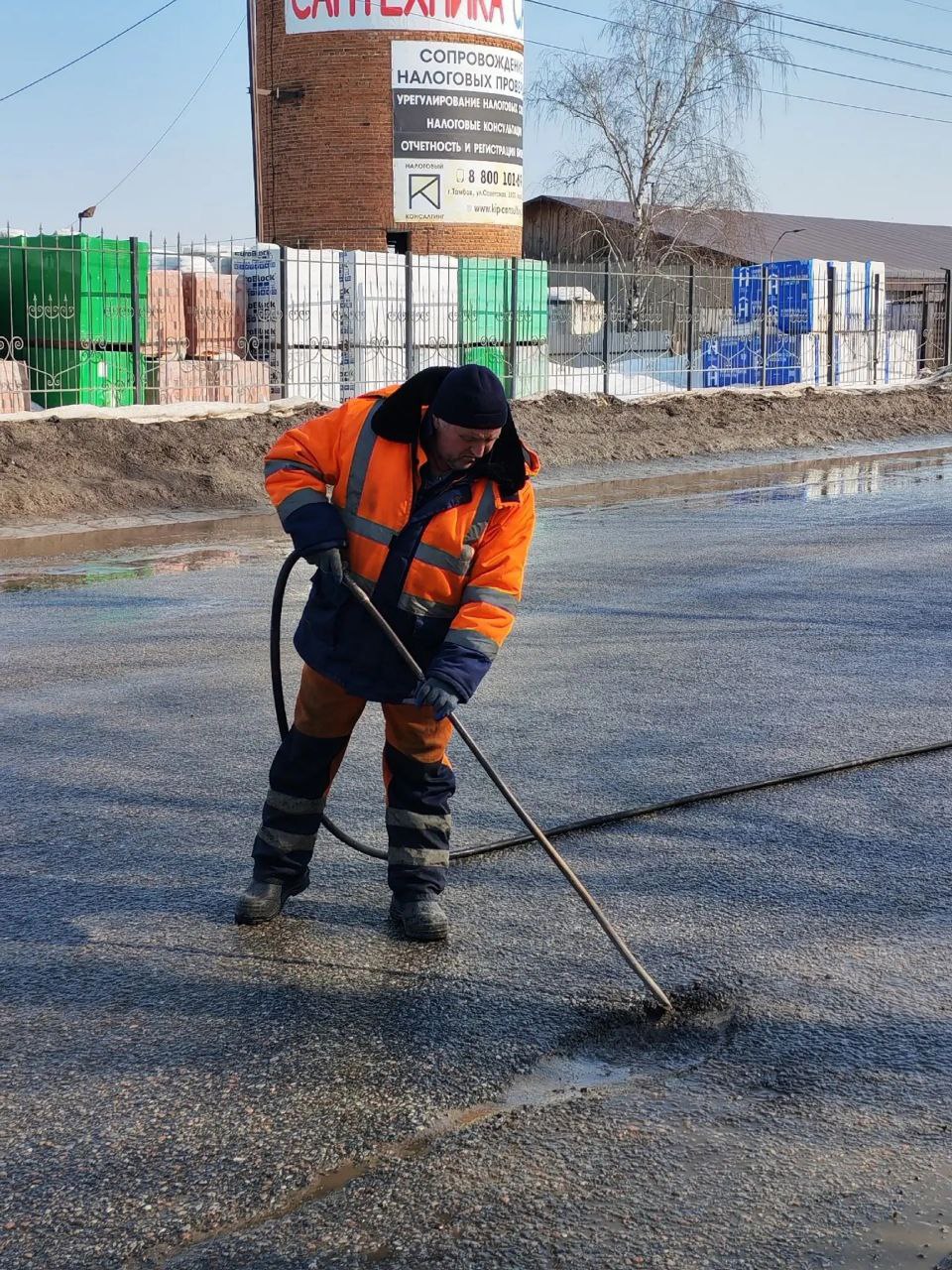 Как только дороги открылись от снега, службы городского хозяйства Тамбова приступили к устранению локальных дефектов покрытия. Ямочный ремонт проводят литой асфальтобетонной смесью. Этот метод позволяет оперативно убирать неровности и предотвращать дальнейшие разрушения.