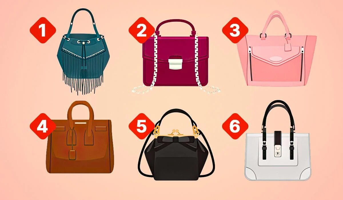 Этот психологический тест направлен на выявление ваших внутренних ощущений и особенностей характера. Выберите свою любимую модель сумки, и прочитайте значение выбора ниже.