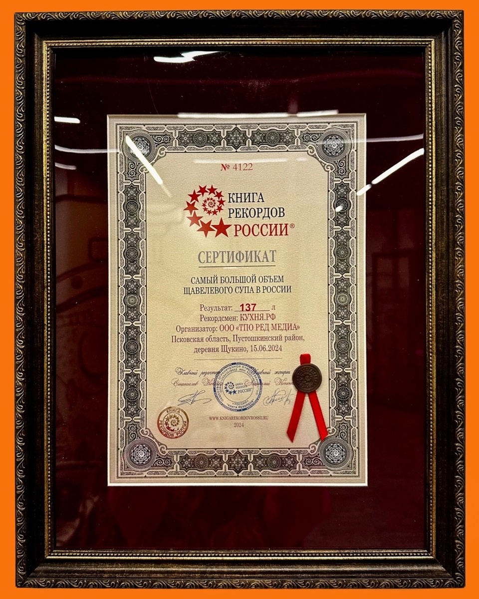 Достижение стало официальным благодаря Станиславу Коненко, главному редактору Книги рекордов России, который объявил суп рекордсменом. Этот момент запечатлен на фото с участниками: Романом Столярским, заместителем генерального директора компании «Ред Медиа», и самим гурманом Григорием Мосиным.