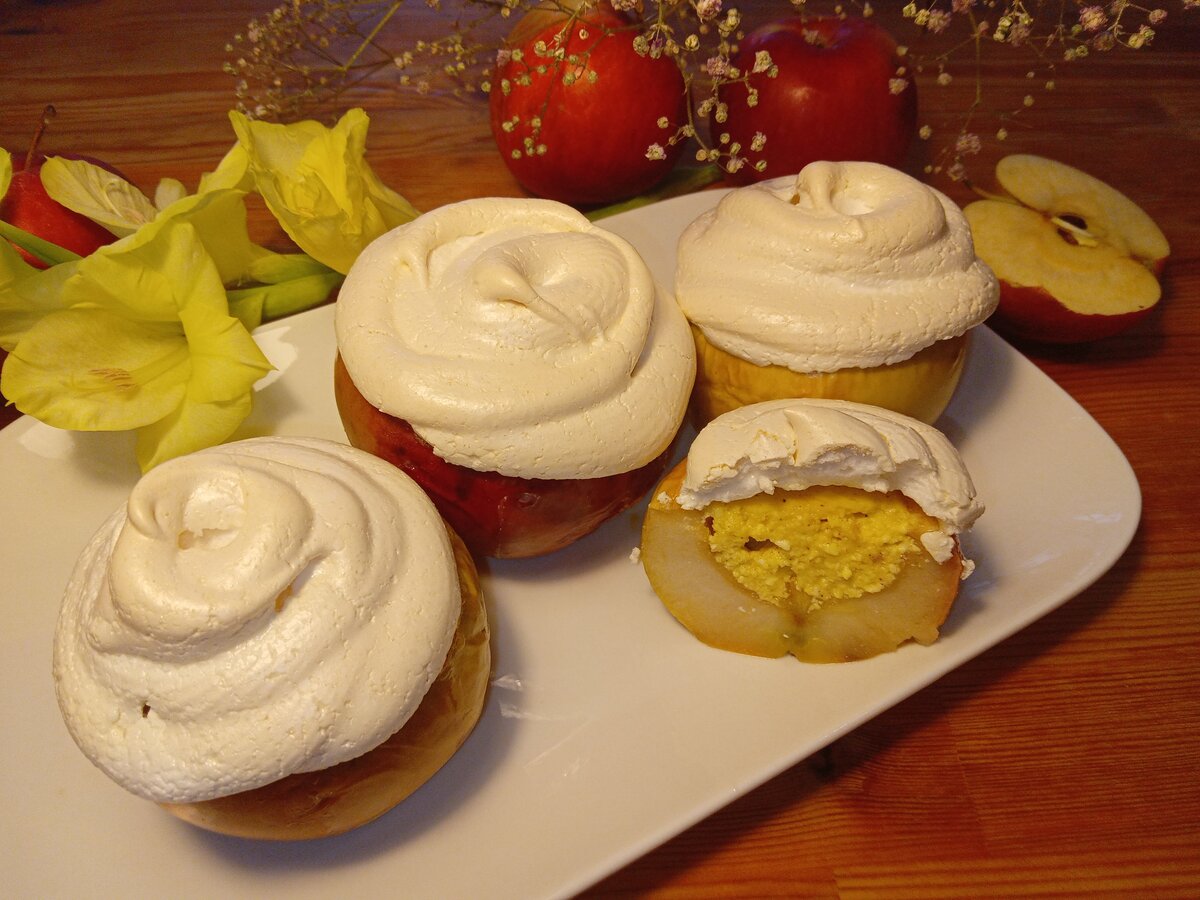 Недавно прошел Яблочный Спас, и это прекрасный повод удивить близких вкусным десертом с яблоками. Запеченные яблоки с творогом и меренгой — это простое, но эффектное угощение, которое не оставит равнодушным никого.