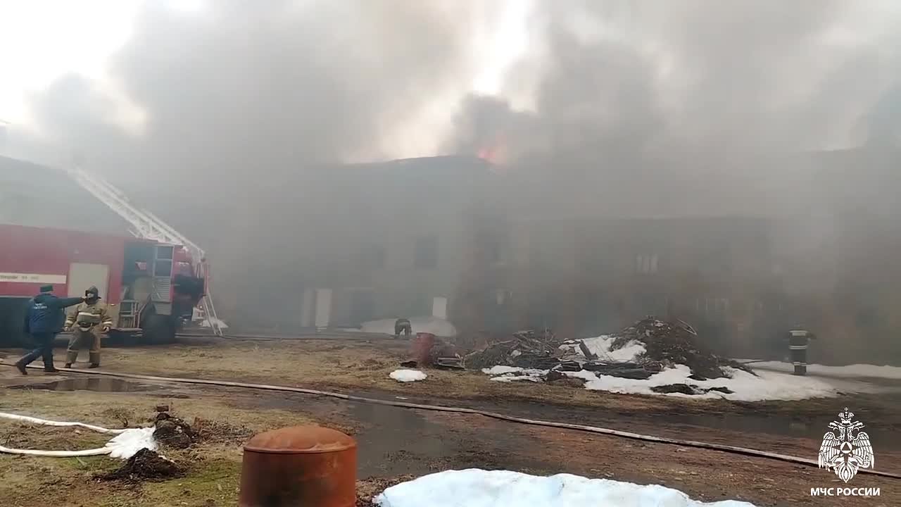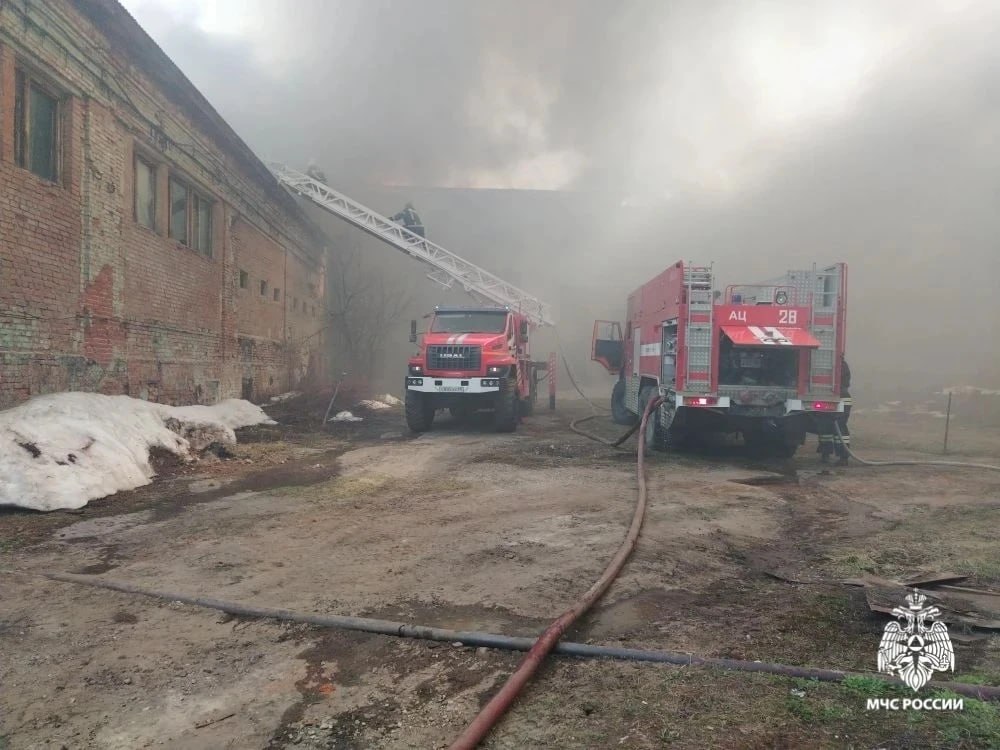 В Моршанске тушат крупный пожар на суконной фабрике