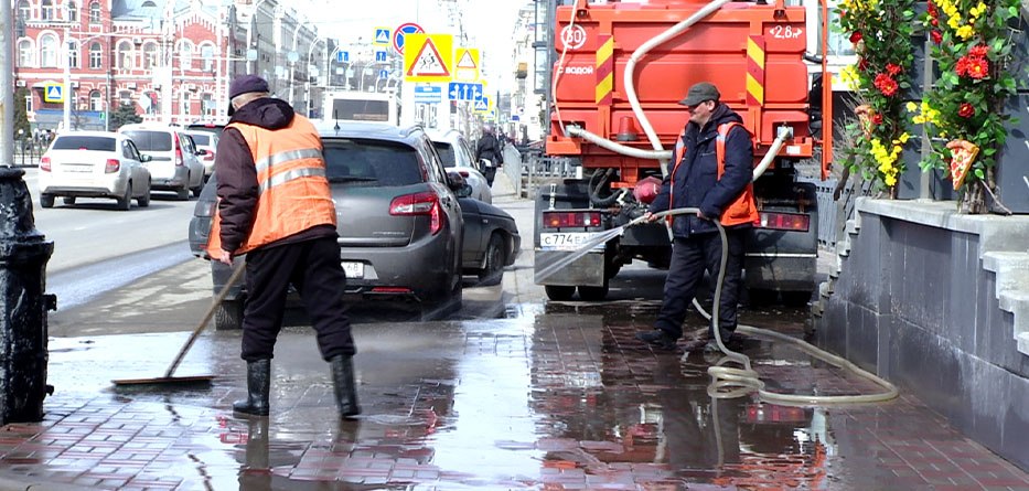 С наступлением устойчивой тёплой погоды на улицах областного центра приступили к влажной уборке. Город отмывают от песка, соли и пыли. В первую очередь внимание уделяют центральным улицам.