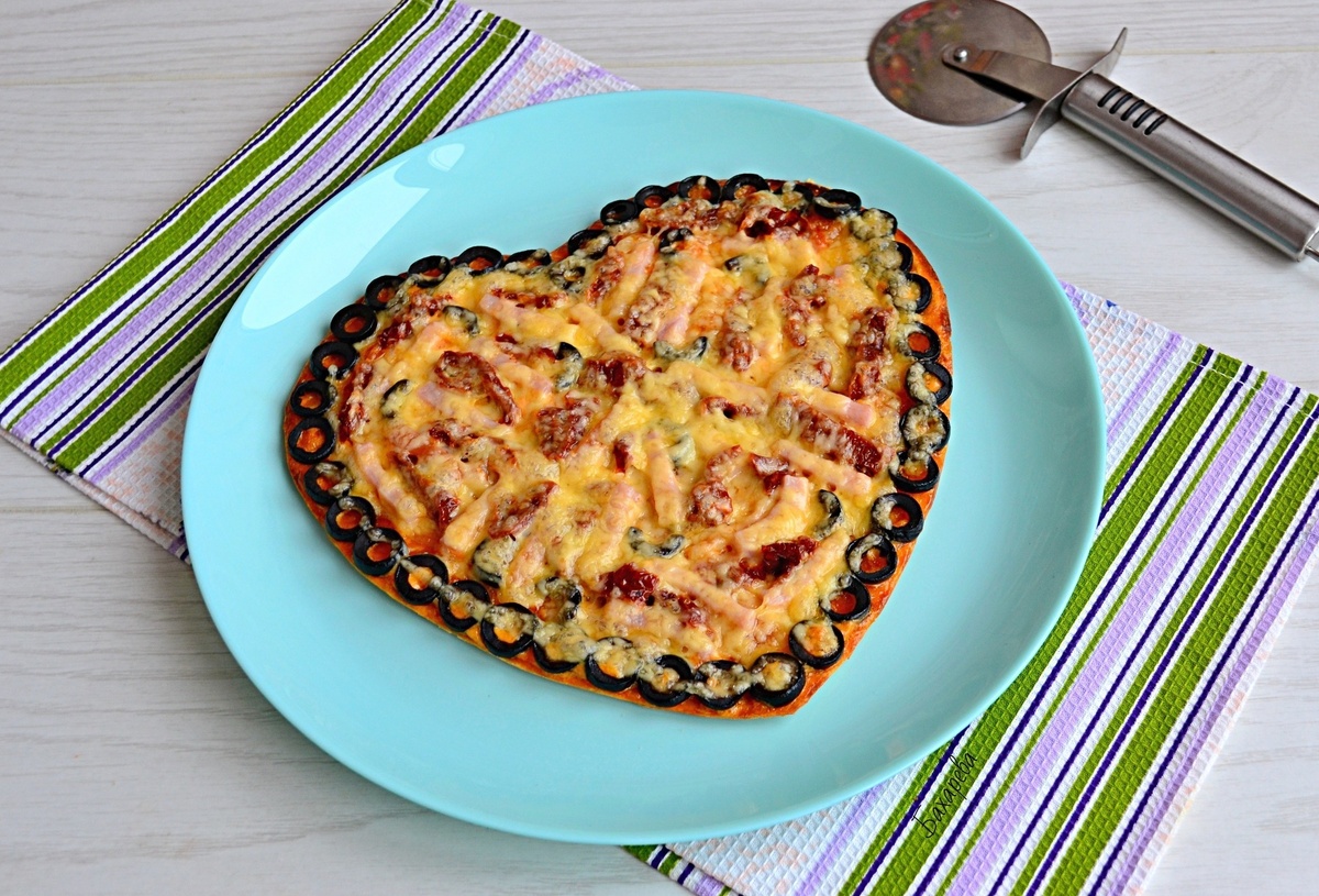Для начала, чтобы пицца выглядела оригинально, можно вырезать из лаваша сердечки. Это добавит красок к подаче и создаст атмосферу во время еды.