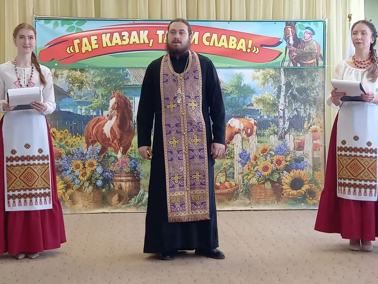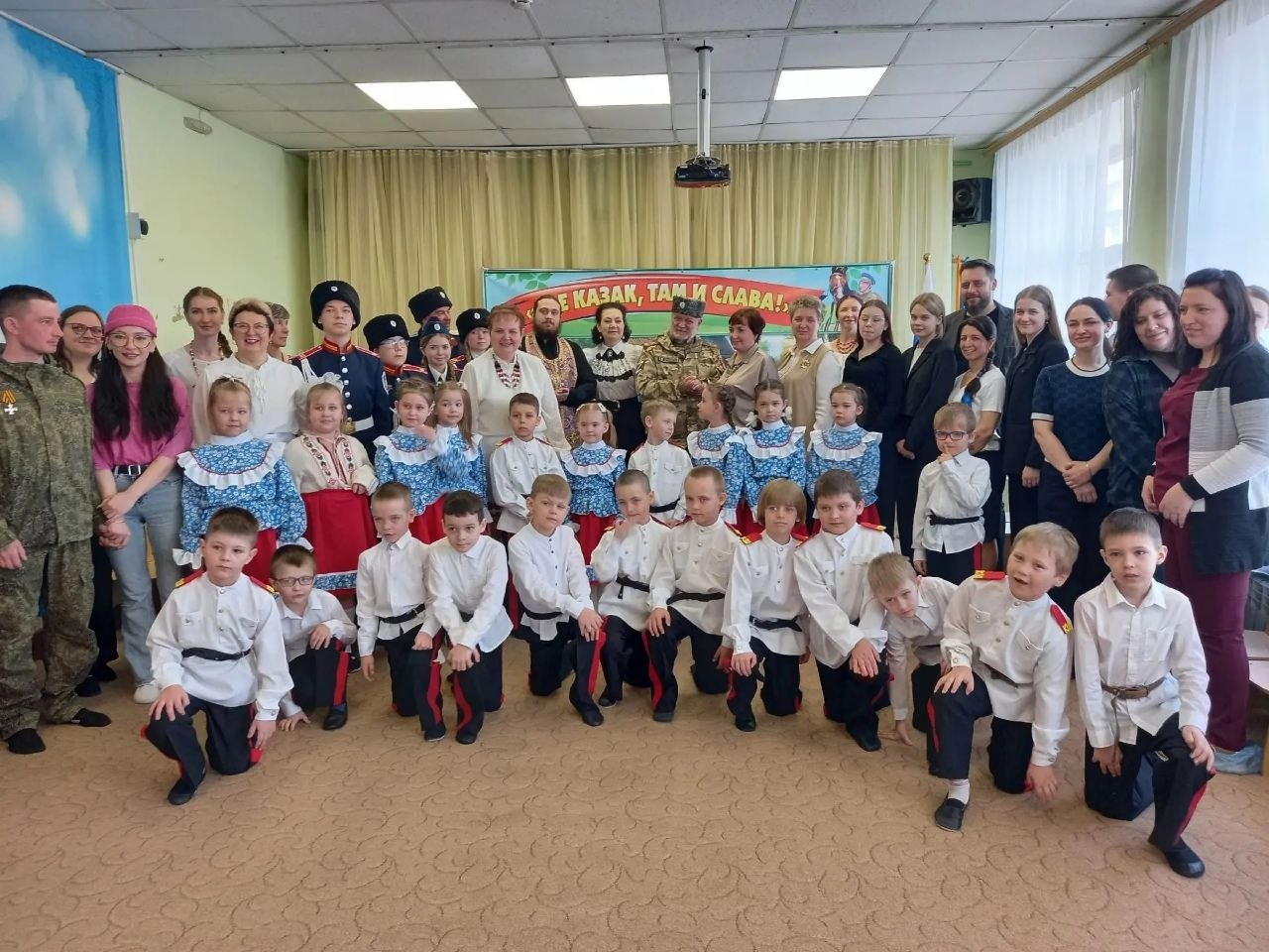Ребята играли в казачьи игры, пели, танцевали. И, как полагается, дали клятву юных казачат.