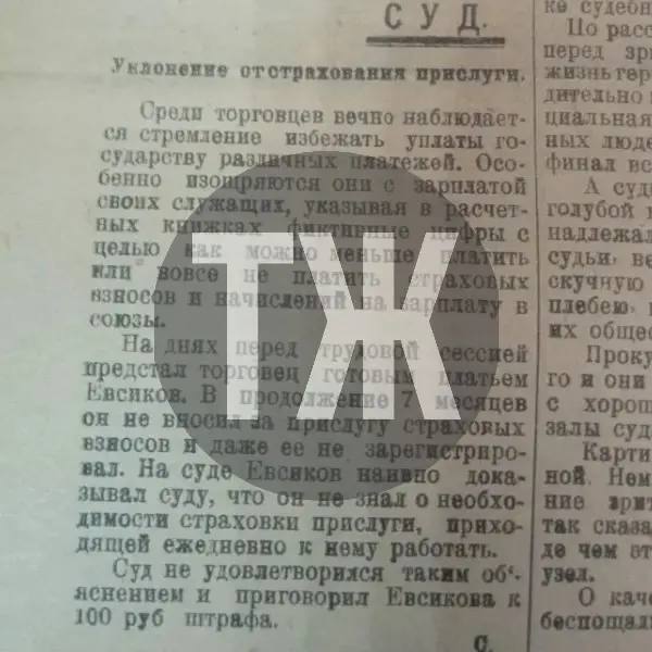 В Тамбове начато судебное разбирательство в отношении торговцев, нанявших прислугу, но скрывающихся от уплаты страховых взносов. В ведомостях дельцы занижают уровень зарплат, чтобы минимизировать свои расходы. Так, торговец готовым платьем Евсиков должным образом не зарегистрировал свою помощницу по хозяйству и не вносил за нее взносы. Трудовая сессия взыскала с него за это 100 рублей.