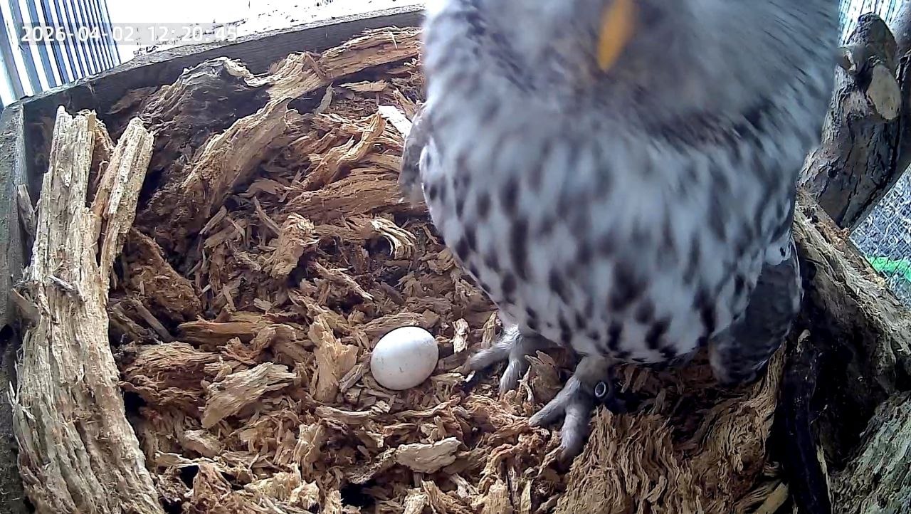 Любимица посетителей "Соколиного двора" длиннохвостая неясыть по имени Пухля обзавелась молодым кавалером ещё в прошлом году, но кладки долго не было. В этом сезоне специалисты увидели долгожданное первое яйцо.