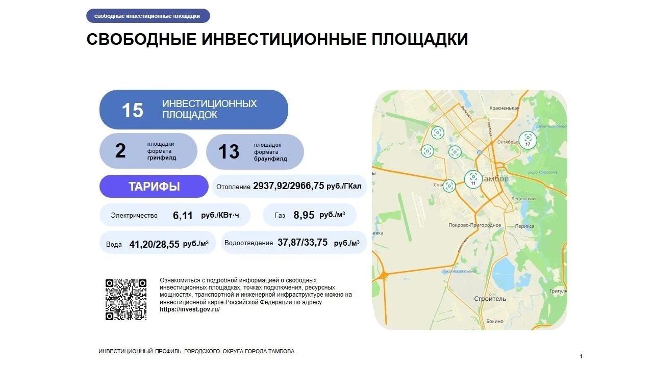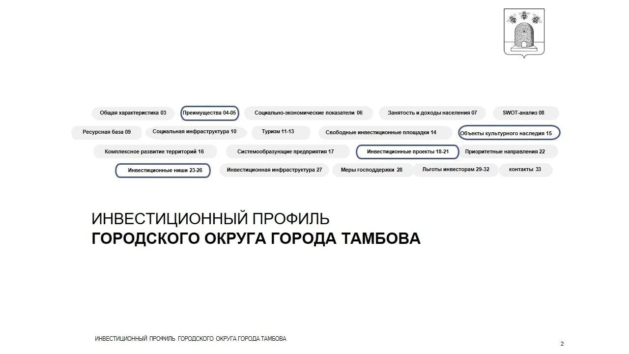 «Разработка инвестиционного профиля - важный шаг для развития экономики города и повышения его привлекательности для инвесторов. Тамбов – это не только уютный город с богатой историей, но и перспективная площадка для инвестиций в промышленность, туризм и инновации», - отмечают в комитете экономического развития и проектной деятельности администрации города.