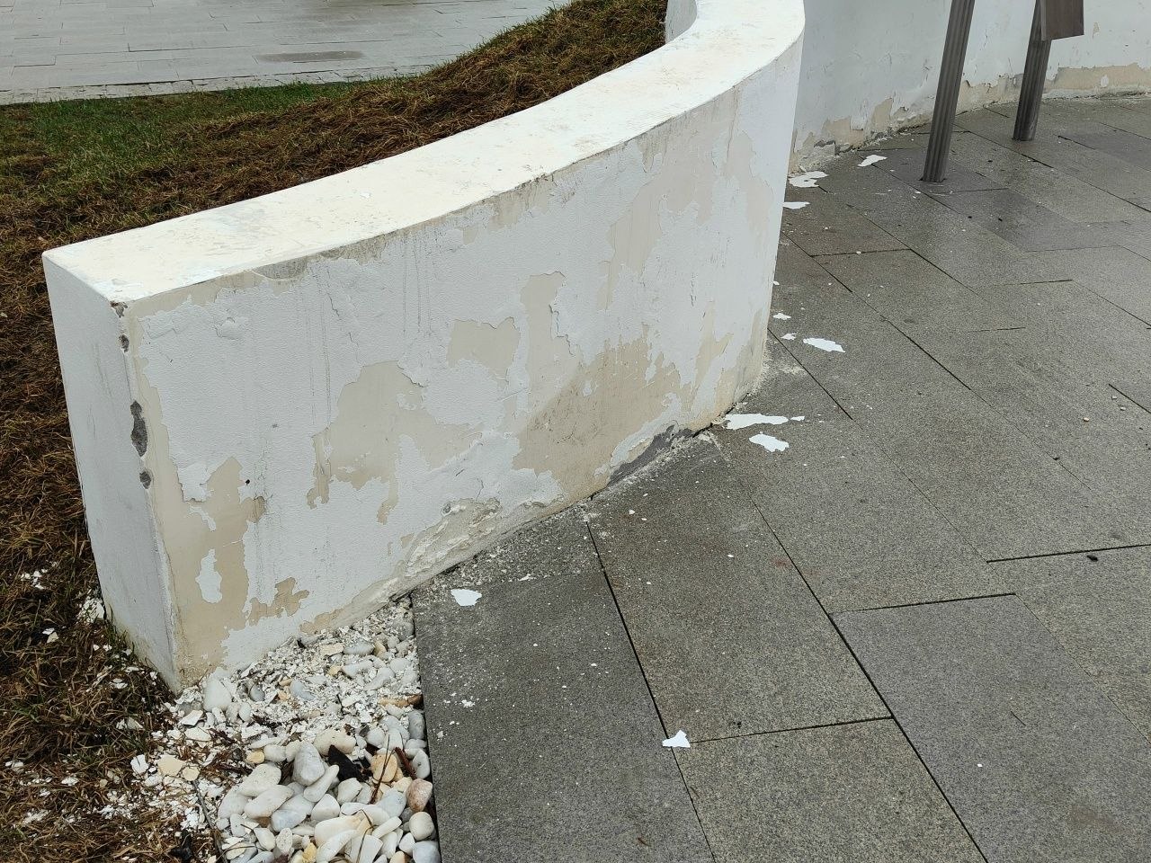 Как отмечают в городской администрации, причиной некоторых недочётов стала снежная зима. Подпорные белые стены долгое время были накрыты сугробами, после таяния снега покрытие стало осыпаться. Кое-где появились сколы и следы от обуви, хотя декоративные элементы для прогулок не предназначены.