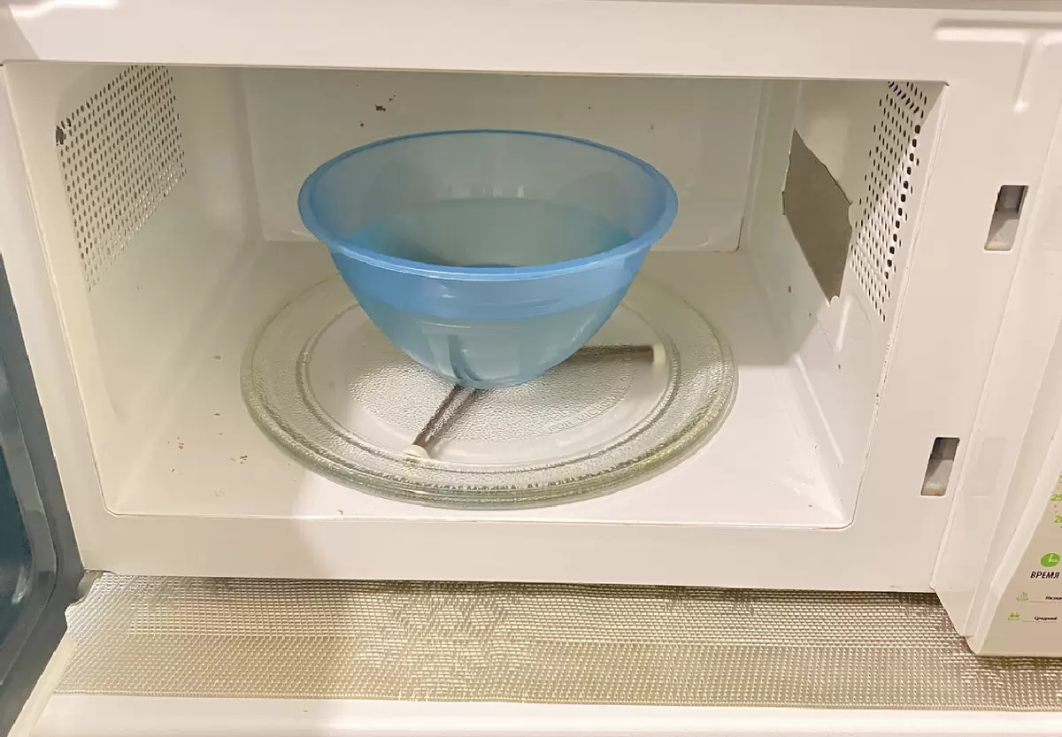 Получившийся раствор помещается в микроволновую печь. Установите устройство на максимальную мощность и включите на пять минут. За это время сода смягчит загрязнения, делая их легче поддающимися очистке.