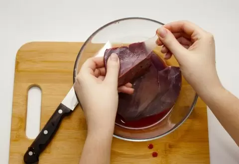 - Охлаждение. Положите печень в морозильник на 20 минут. За это время пленка немного подмерзнет, и снять ее станет проще.