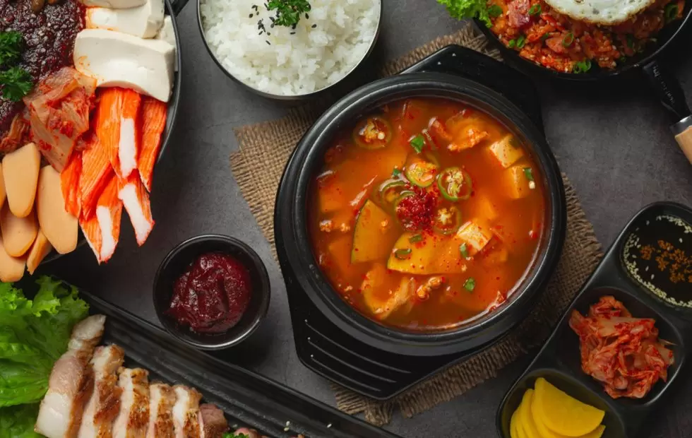 - Система панчхан: множество небольших тарелок с разными блюдами помогают контролировать порции;