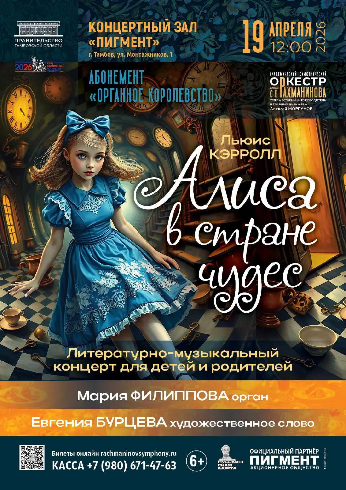 19 апреля в концертном зале «Пигмент» Академический симфонический оркестр имени Сергея Рахманинова представит программу Органное королевство: «Алиса в стране чудес».