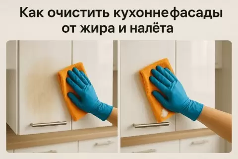 Для поддержания чистоты между генеральными уборками рекомендовано использовать паровой очиститель — он борется с жиром и бактериями без химии и подходит для множества кухонных поверхностей. А для ежедневного ухода достаточно просто протирать фасады чистой микрофибровой салфеткой, слегка смоченной водой.