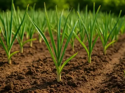 Первой причиной желтизны листьев обычно становится недостаток калия. Эта проблема особенно остро проявляется на легких песчаных почвах и в жаркую погоду. Калий крайне важен для чеснока, так как он влияет на налив луковиц, формирование прочных чешуек и защищает растения от болезней.