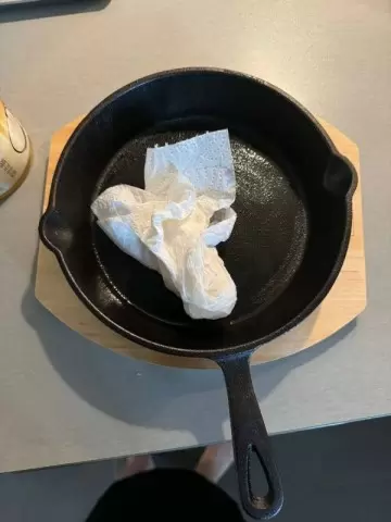 - Обильная соль и бумажное полотенце — идеальное сочетание. Посыпьте сковороду солью и аккуратно протрите ее, используя бумажное полотенце. Это не только удалит остатки пищи, но и восстановит защитный слой.