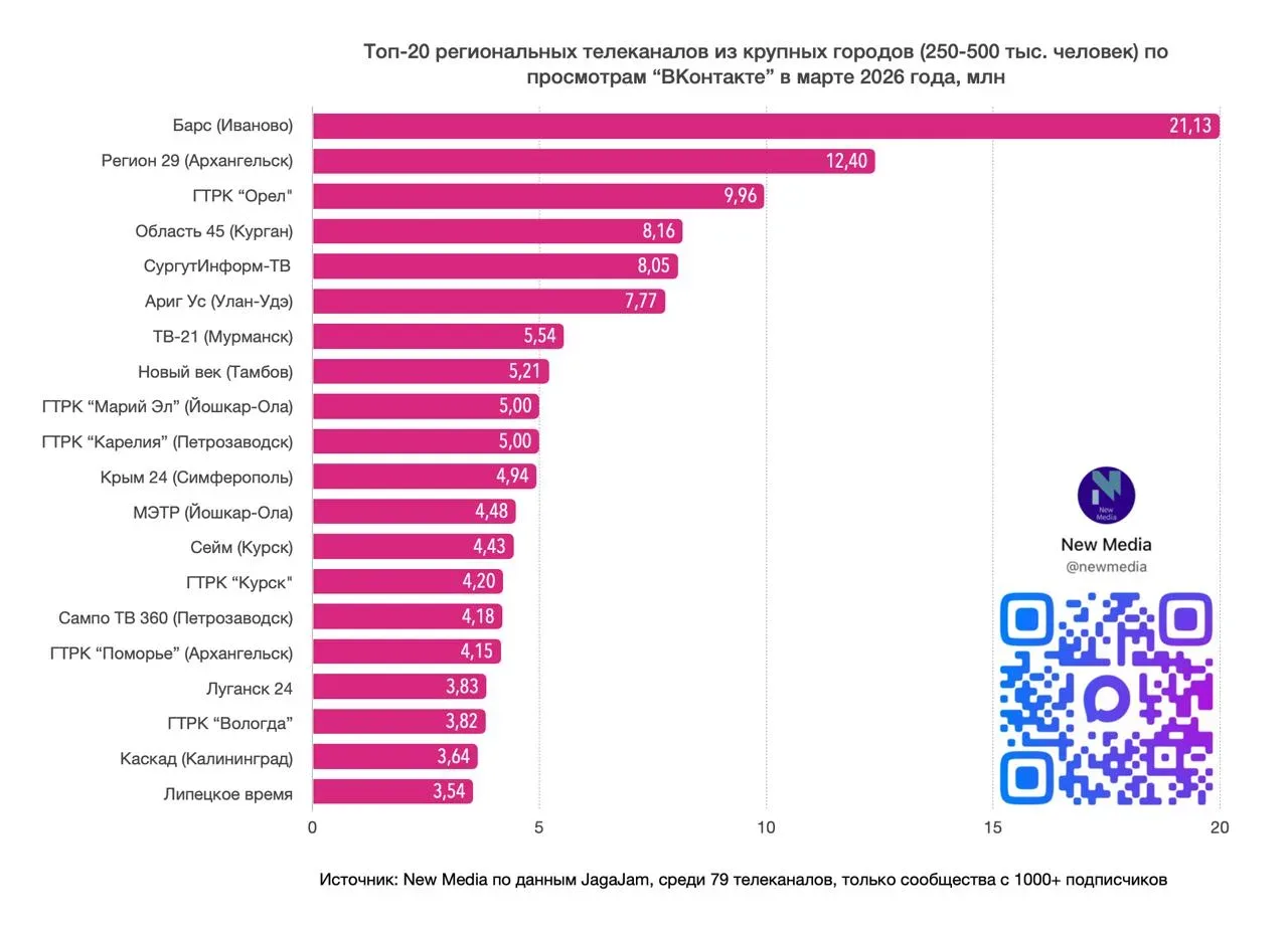 "Новый век" вошел в Топ-10 региональных телеканалов по суммарному количеству просмотров ВКонтакте