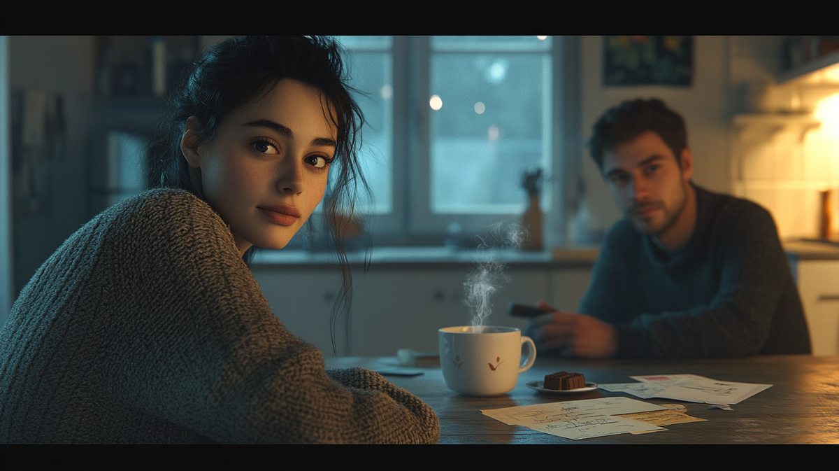 Света стояла у окна и наблюдала, как снежинки медленно оседают на землю, создавая мягкую белую пелену. Серый вечер отражал её мысли, полные тревог. На кухне доносился звук посуды — её дочь, Юля, готовила чай. Воспоминания об их прошлом давили на сердце, но Света старалась не выдать свои эмоции, чтобы Юля, полная оптимизма и уверенности в завтрашнем дне, не заметила её слёз.