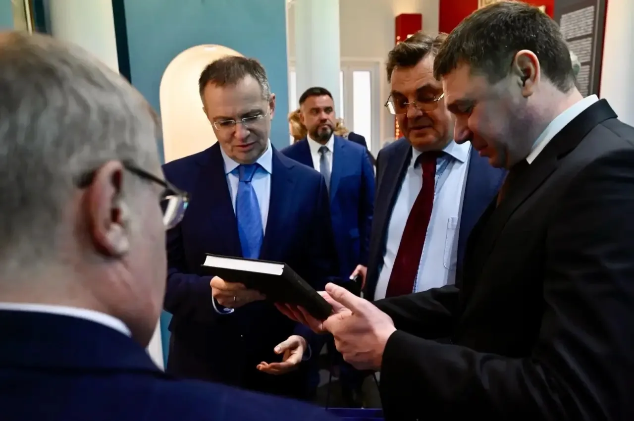 Участники церемонии открытия памятника также осмотрели экспозицию нового музея "Наследие Земли Тамбовской" — совместного проекта РВИО и Правительства Тамбовской области.