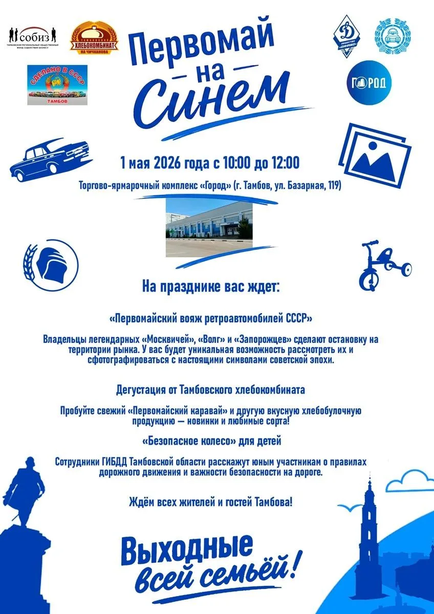 1 мая с 10:00 до 12:00 в торгово-ярмарочном комплексе «Город» на Базарной пройдет праздничное мероприятие «Первомай на Синем Городе».